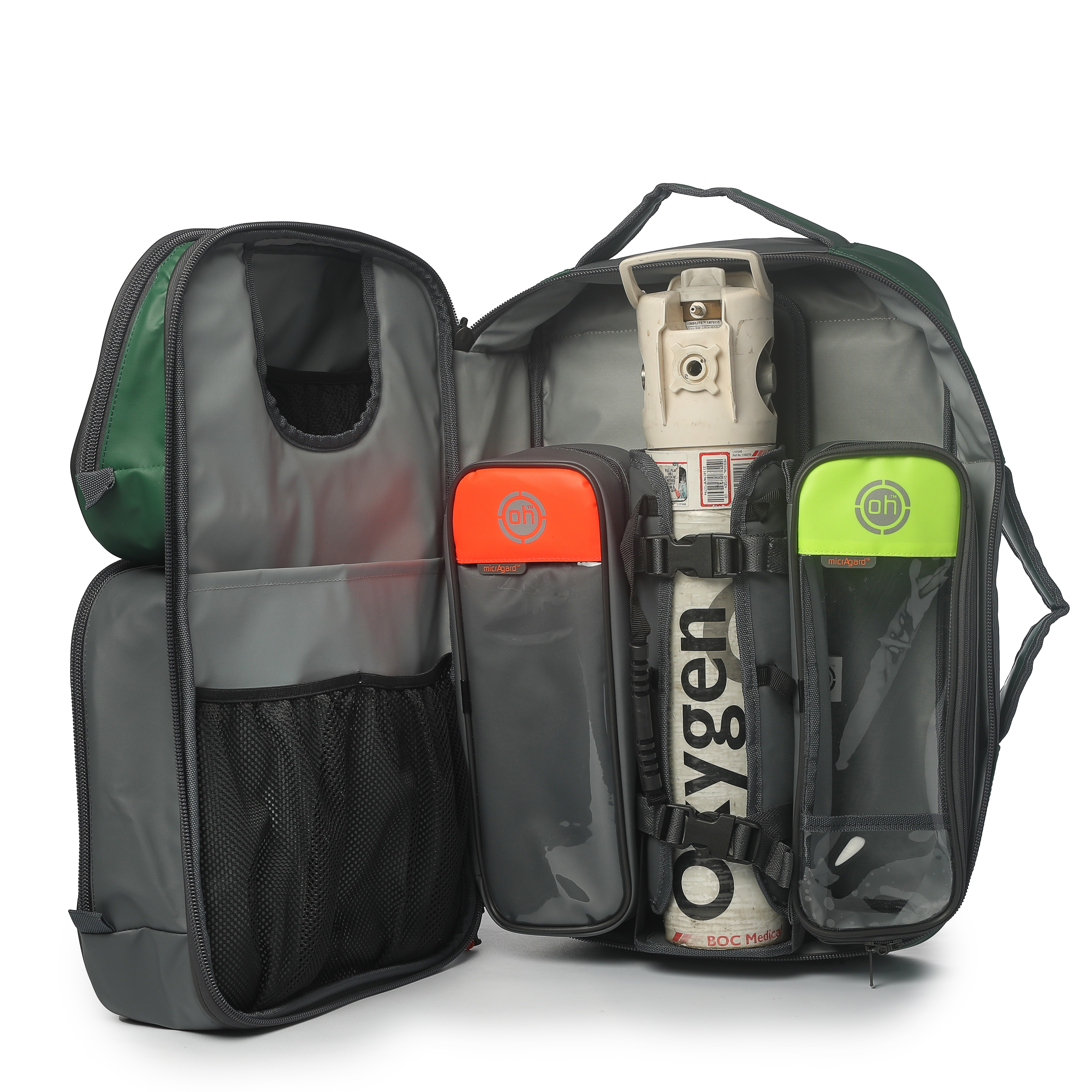 One of our most popular designs for CFRs, private medical companies and event medical services, this backpack holds a CD sized cylinder and an AED, as well as all your other kit.