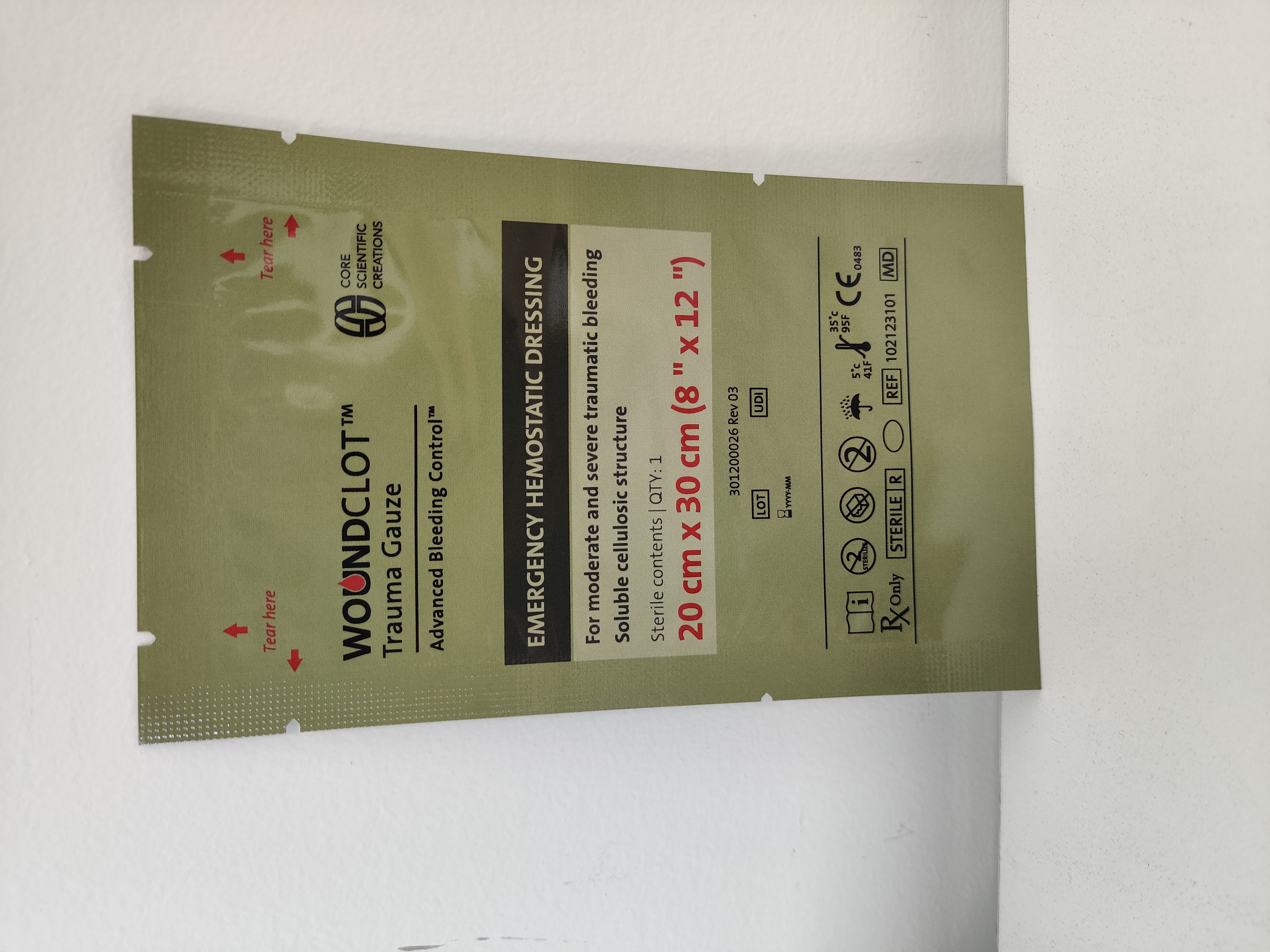 WoundClot™ Trauma Gauze is a next-generation hemostatic gauze intended for bleeding control of traumatic wounds, including moderate to severe bleeding. For use by trained emergency responders.